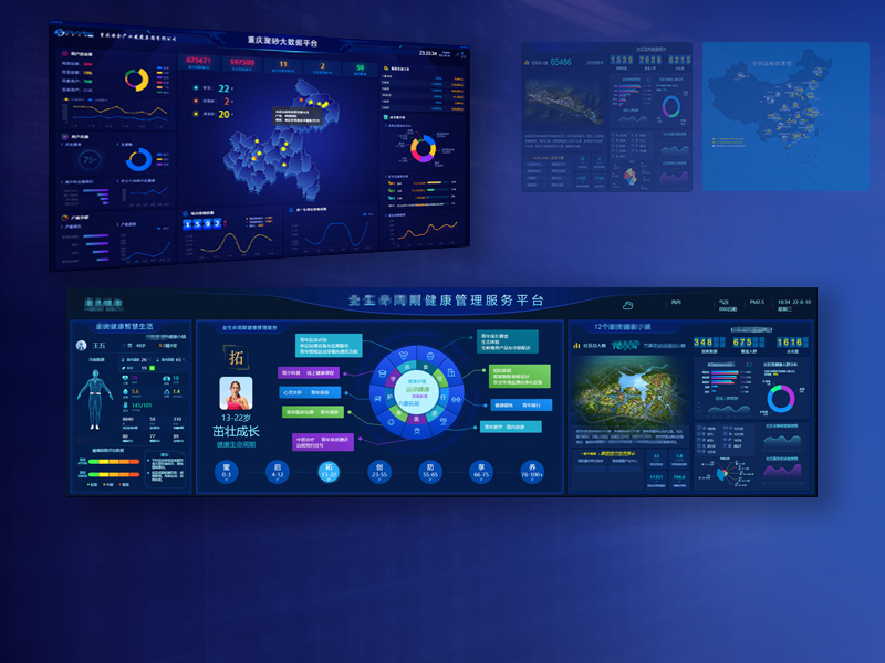 為企事業單位量身設計和開發的數據可視化系統。通過直觀的數據可視化,將核心業務數據實時、動態地呈現在大屏幕上。支持核心數據鉆取和數據自動輪播。講解模式下支持手機或平板控制數據呈現和切換,以實現講解和屏幕呈現同步。