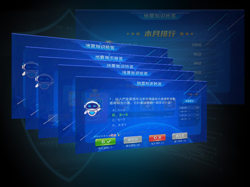 本產品為配合知識科普館等單位實現線下線上打通,滿足離館后繼續科普的目的??蓪崿F館中游戲結果導入線上,線上繼續進行知識競答。最大限度地將知識科普進行到底,實現較好的科普和傳播效果。