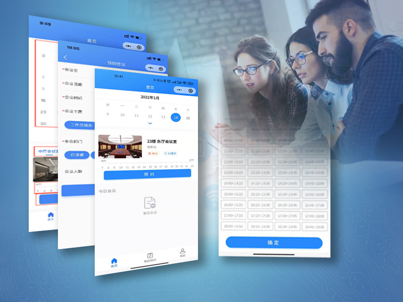 為解決各單位會議室資源共享沖突而設計的小型會議預約軟件。各部門可方便地在手機小程序上完成會議預約或查看已預約會議。在會議公告屏上實時顯示當前會議和已預約會議。預約中系統自動提示沖突時段并給予提示和建議。